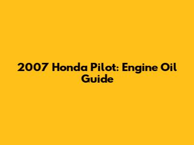Hey there, fellow Honda Pilot enthusiasts! If you're here, chances are you're curious about the 2007 Honda Pilot engine oil type and how to keep your trusty SUV running smoothly. Well, you've come to the right place! This comprehensive guide will break down everything you need to know about the right oil for your 2007 Pilot, including the recommended oil type, oil capacity, and even some helpful tips to keep your engine in tip-top shape. So, grab a cup of coffee, and let's dive into the oily details!
