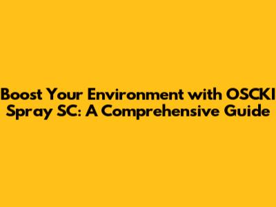 Boost Your Environment With OSCKI Spray SC: A Comprehensive Guide