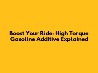Boost Your Ride: High Torque Gasoline Additive Explained