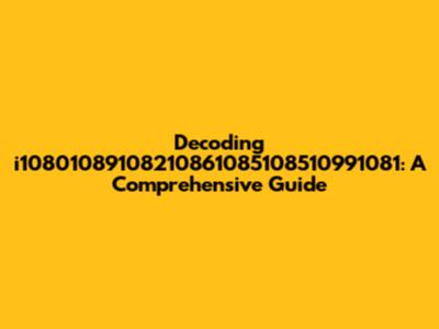 Decoding I10801089108210861085108510991081: A Comprehensive Guide