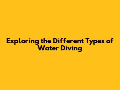 Exploring The Different Types Of Water Diving