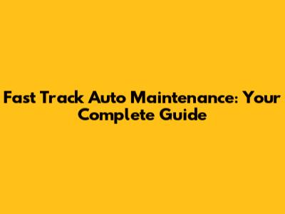 Fast Track Auto Maintenance: Your Complete Guide