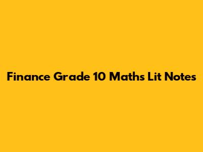Finance Grade 10: Maths Lit Notes