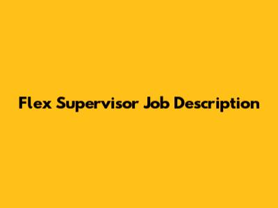 Flex Supervisor Job Description: What You Need To Know