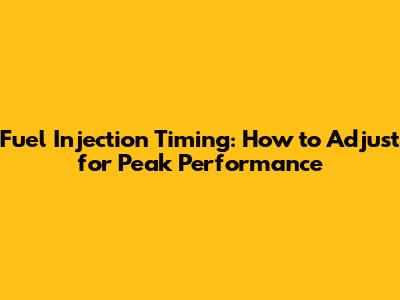 Fuel Injection Timing: How To Adjust For Peak Performance