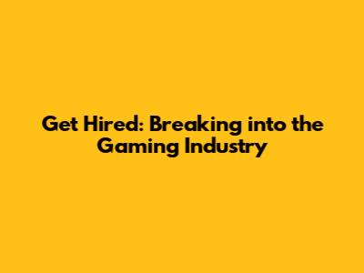Get Hired: Breaking Into The Gaming Industry