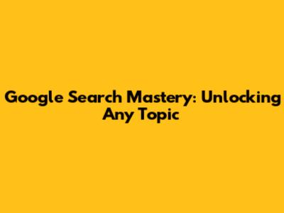 Google Search Mastery: Unlocking Any Topic