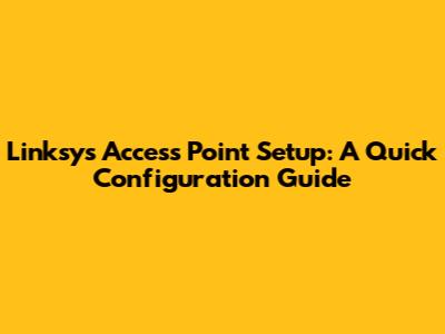 Linksys Access Point Setup: A Quick Configuration Guide