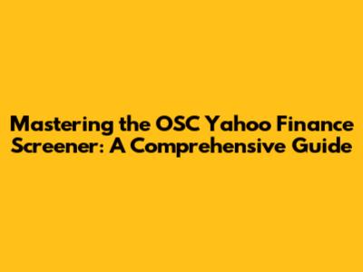 Mastering The OSC Yahoo Finance Screener: A Comprehensive Guide