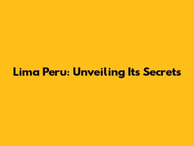 Hey guys! Let's dive deep into the fascinating world of Lima Peru. You might have heard of it, or maybe this is your first introduction, but trust me, there's a whole lot to uncover about this intriguing term. When we talk about Lima Peru, we're often referring to a unique intersection of culture, history, and sometimes even specific entities or locations within the vibrant capital of Peru. It’s not just a simple geographical mention; it encapsulates a rich tapestry of experiences and information that draws people in. Whether you're a history buff, a foodie, an adventurer, or just someone curious about the world, Lima Peru holds a special place in the global conversation. We're going to explore what makes it so significant, covering its historical roots, its modern-day allure, and why understanding Lima Peru is important for anyone looking to grasp the essence of Peru itself. So buckle up, because we're about to embark on a journey to understand Lima Peru from every angle, making sure you get the full picture and perhaps even find your next travel destination or research topic.