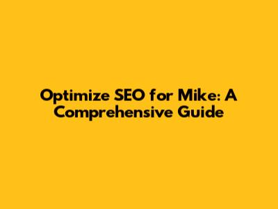 Optimize SEO For Mike: A Comprehensive Guide