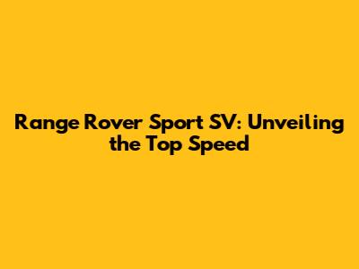 Range Rover Sport SV: Unveiling The Top Speed