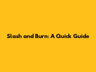 Slash And Burn: A Quick Guide