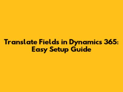 Translate Fields In Dynamics 365: Easy Setup Guide