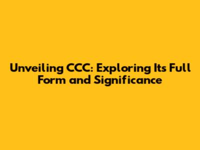 Unveiling CCC: Exploring Its Full Form And Significance