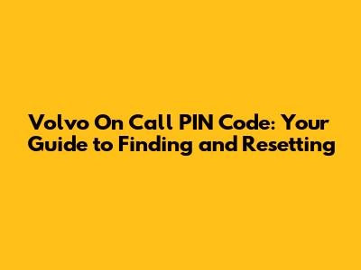 Volvo On Call PIN Code: How To Find & Reset